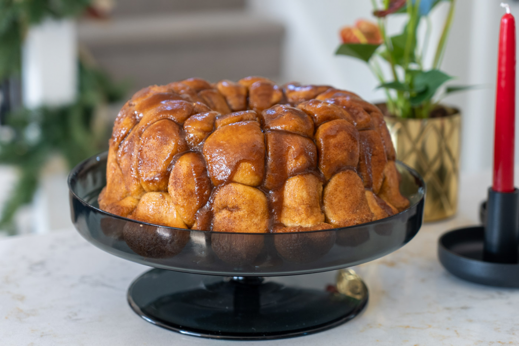 The night before, complete steps 1-4. Place your pan in the refrigerator overnight. Take the pan out of the refrigerator. Make sure dough does not exceed the top of the pan. You may need to let it continue to rise slightly at room temperature. This is a great time to preheat your oven. Continue with steps 5-6.